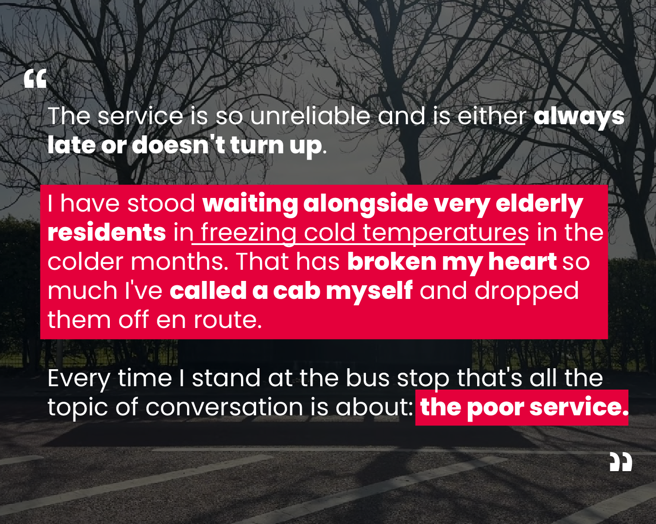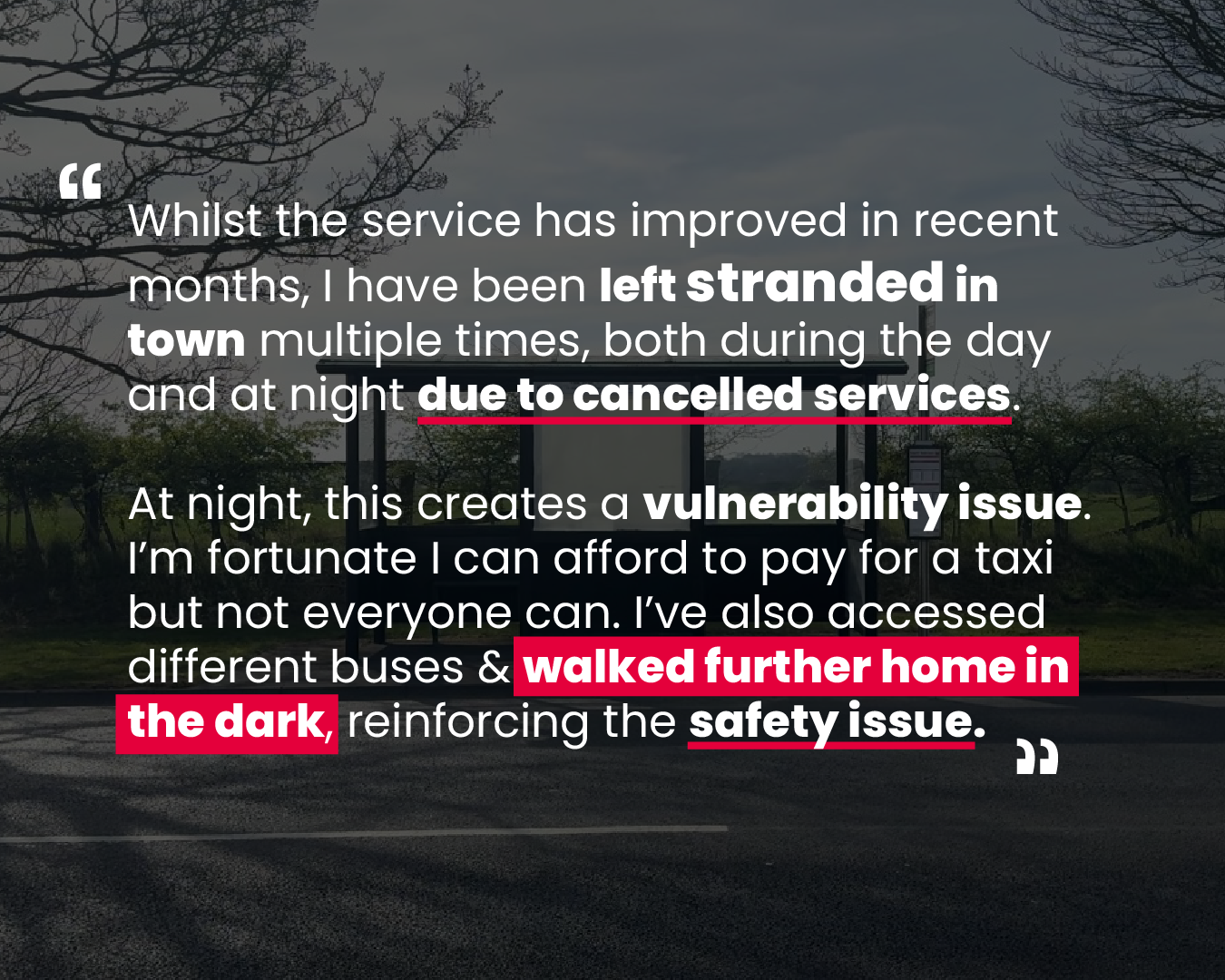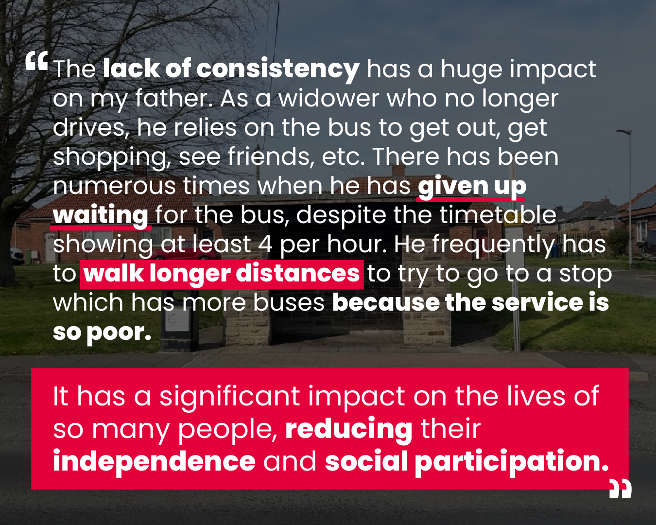 I know from people contacting me that too often people in our constituency are let down by late, cancelled or non-existent services. Bad bus services impact people’s ability to get to work, school, appointments and see loved ones.