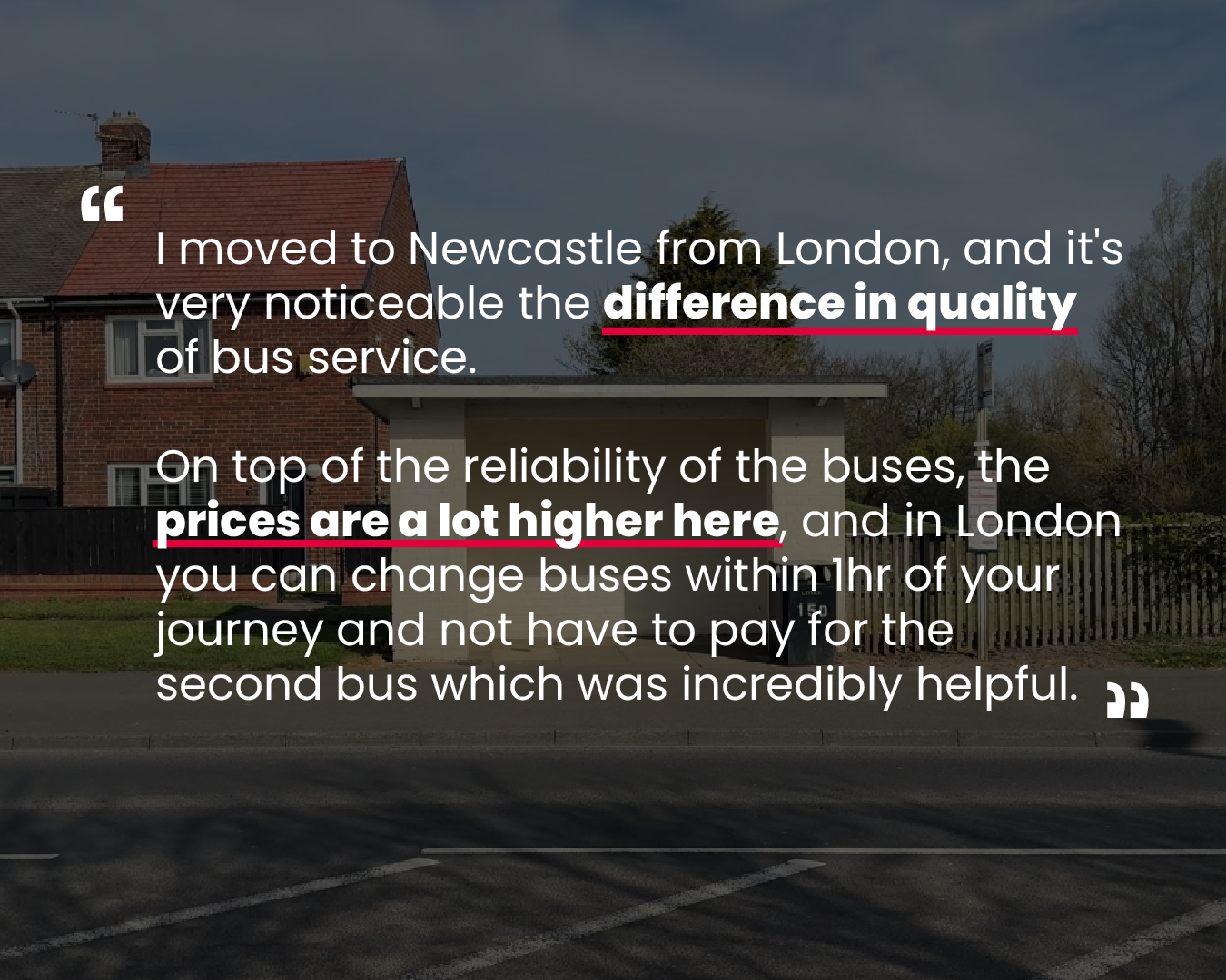 I want to hear from you, so I can raise your issues with the bus companies, the North East Mayor, and of course in Parliament.